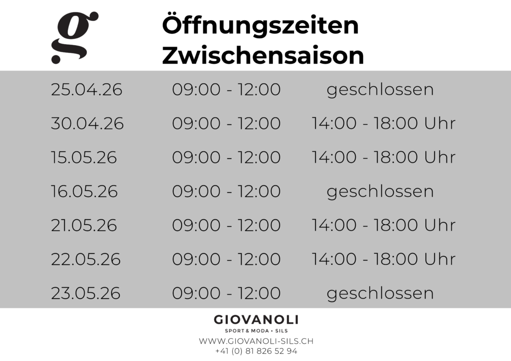 Seit Jahrzehnten sorgt das in dritter Generation von der Familie Giovanoli geführte Geschäft für den richtigen Auftritt in der Winter und Sommerlandschaft des Engadins – mit hochwertiger und zeitloser Mode sowie mit ausgewählten Sportartikeln. Giovanoli Sport & Moda bietet eine Beratung und einen Service, die den Menschen ins Zentrum rückt. Deshalb lohnt sich der Weg nach Sils in jedem Fall.